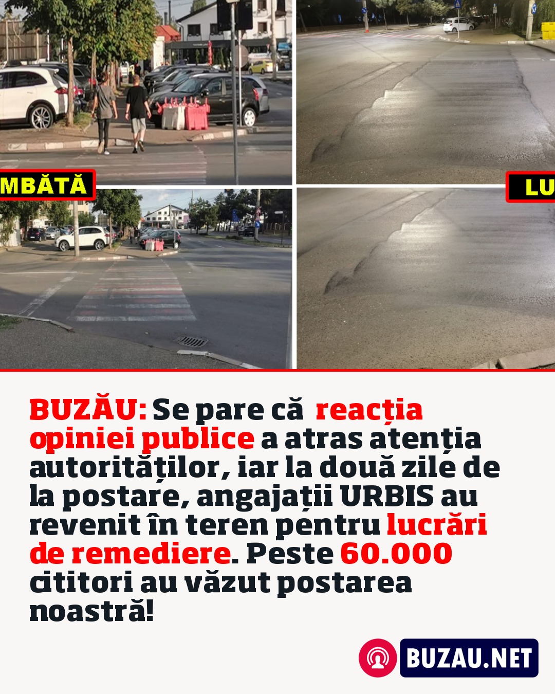 Problema a fost semnalată public în urmă cu două luni, când trecerea de pietoni a fost relocată la aproximativ 20 de metri distanță, în apropierea Școlii Generale nr. 15. La scurt timp după sesizarea inițială, care a atras sute de reacții online, lucrătorii Urbis Serv au intervenit și au acoperit marcajele rutiere cu un strat de smoală. Intervenția s-a dovedit a fi, însă, una temporară.