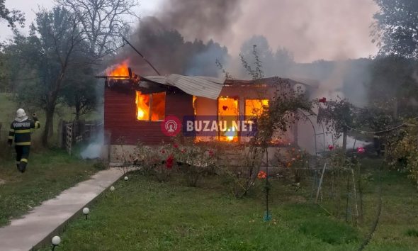Casă mistuită de flăcări într-o localitate din județul Buzău