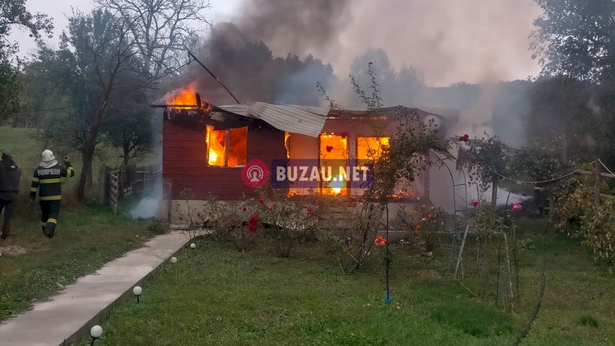 Casă mistuită de flăcări într-o localitate din județul Buzău
