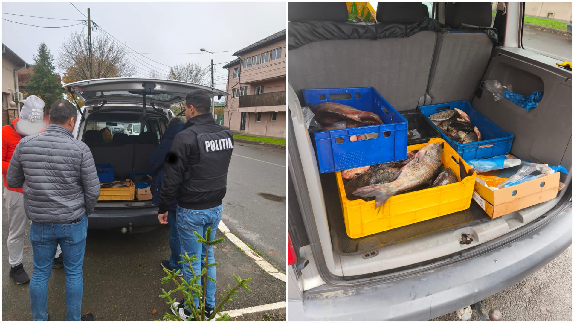 În urma verificărilor specifice, polițiștii au constatat că bărbatul nu deține documente legale pentru peștele transportat, din speciile plătică și novac.