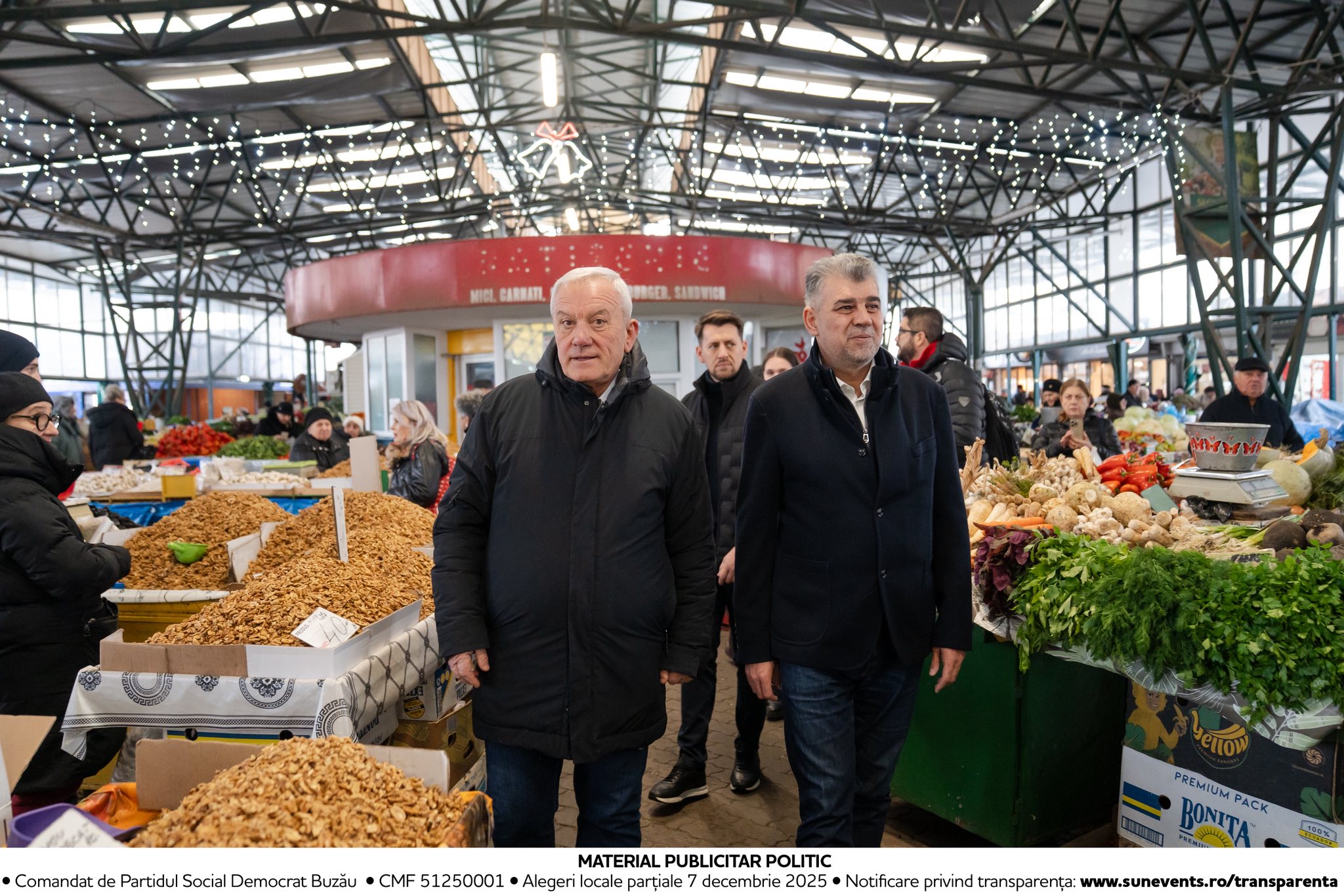 Candidatul PSD la președinția Consiliului Județean Buzău, Marcel Ciolacu, și primarul Constantin Toma au ieșit împreună în mijlocul buzoienilor, într-o acțiune de campanie electorală desfășurată în Piața Centrală a orașului. Abia întors din concediu, edilul-șef i s-a alăturat lui Ciolacu pentru a-i convinge pe cetățeni să-l voteze în cadrul alegerilor parțiale din data de 7 decembrie 2025.