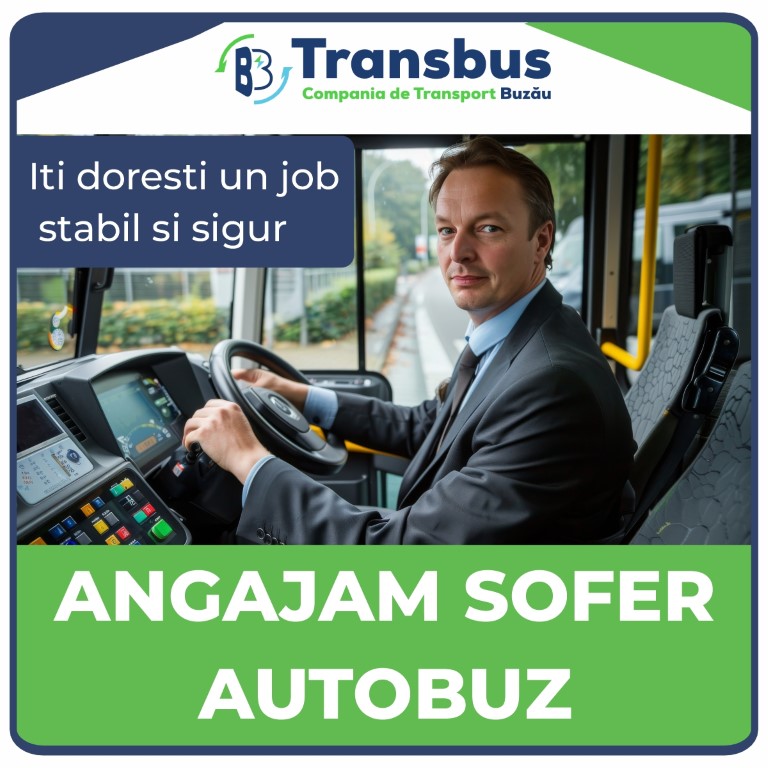 Compania de transport public Transbus S.A. Buzău anunță deschiderea a 15 posturi pentru șoferi de autobuz. Candidații selectați vor beneficia de un mediu de lucru stabil, un pachet salarial atractiv (incluzând salariu, sporuri, tichete de masă, vouchere de vacanță și prime) și condiții moderne, având ocazia să lucreze pe autobuze noi, inclusiv electrice.