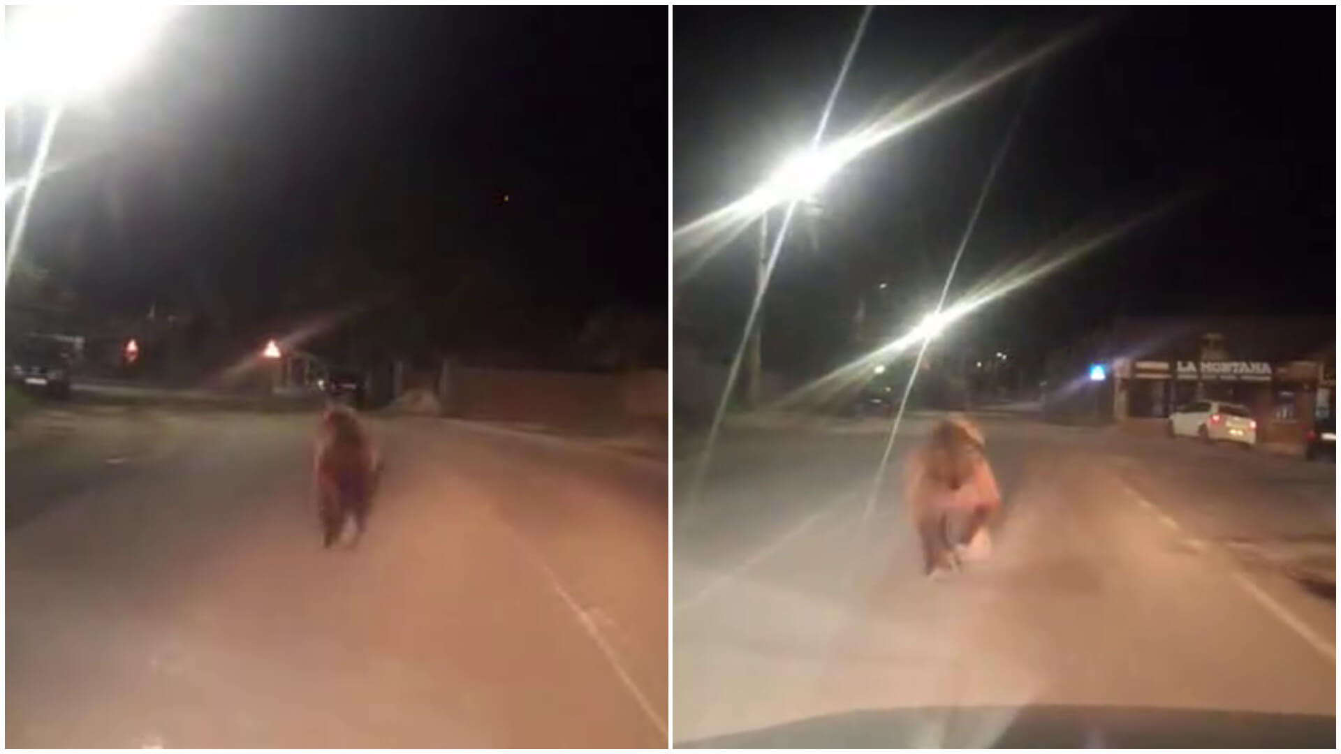 Speriat, ursul a luat-o la goană, alergând dezorientat încercând să se îndepărteze de pericol.